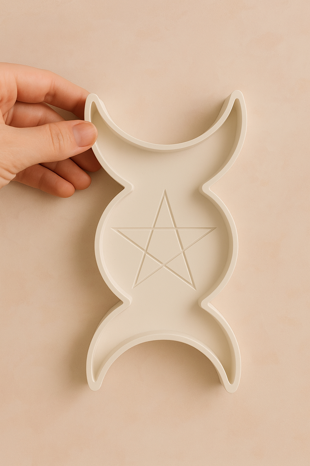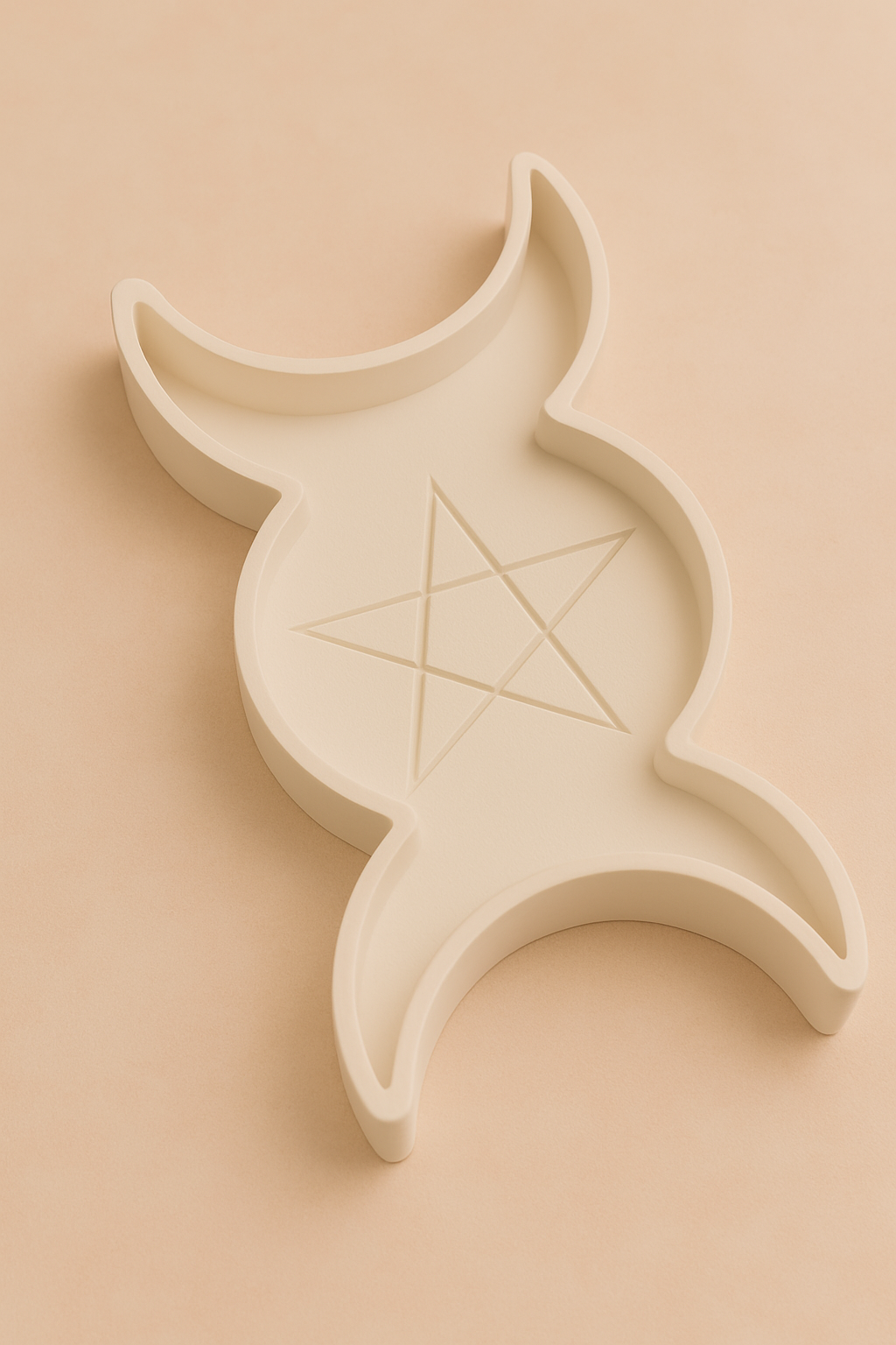 Al elegir la Bandeja de Cerámica Triple Luna con Pentáculo, integras dos fuerzas espirituales complementarias: