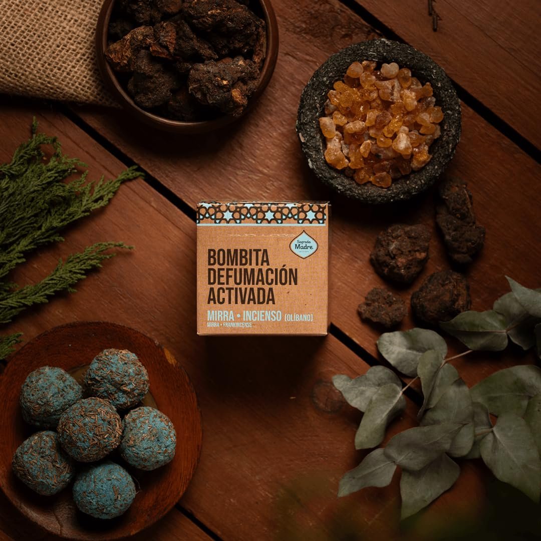 Las Bombitas de Incienso Mirra Sagrada Madre te ofrecen la resina sagrada en un formato concentrado y natural. Elaboramos estas bombitas artesanalmente. Por consiguiente, contienen resina de mirra pura y otros ingredientes naturales que potencian su poder espiritual y sanador.