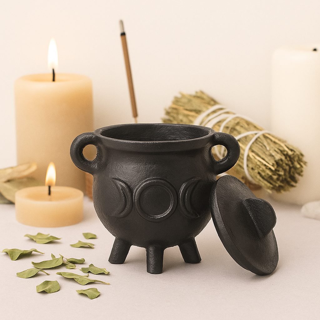 Utiliza tu Caldero de Hierro Fundido Triple Luna para Rituales para trabajar la energía femenina, la manifestación y la protección:
