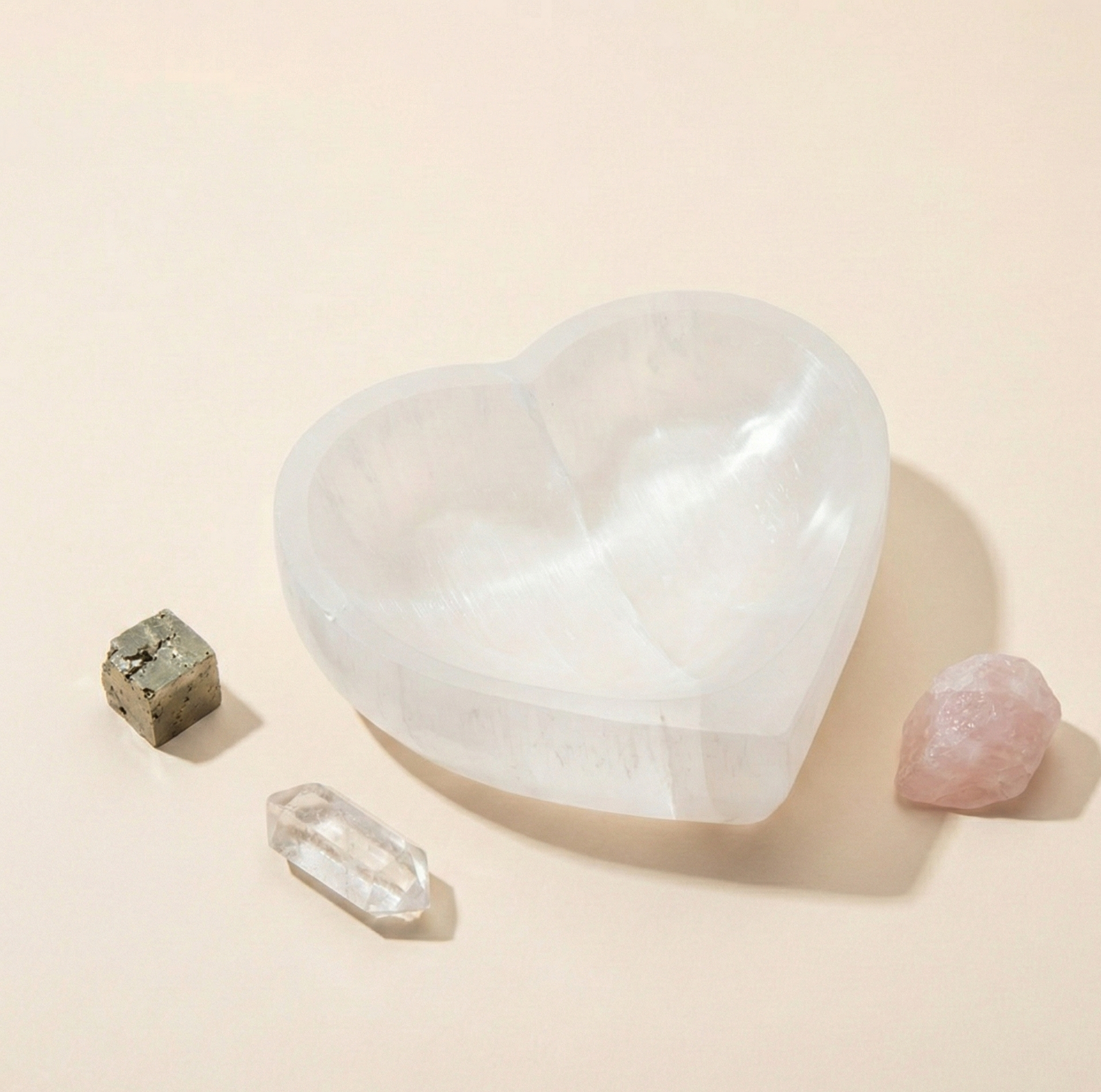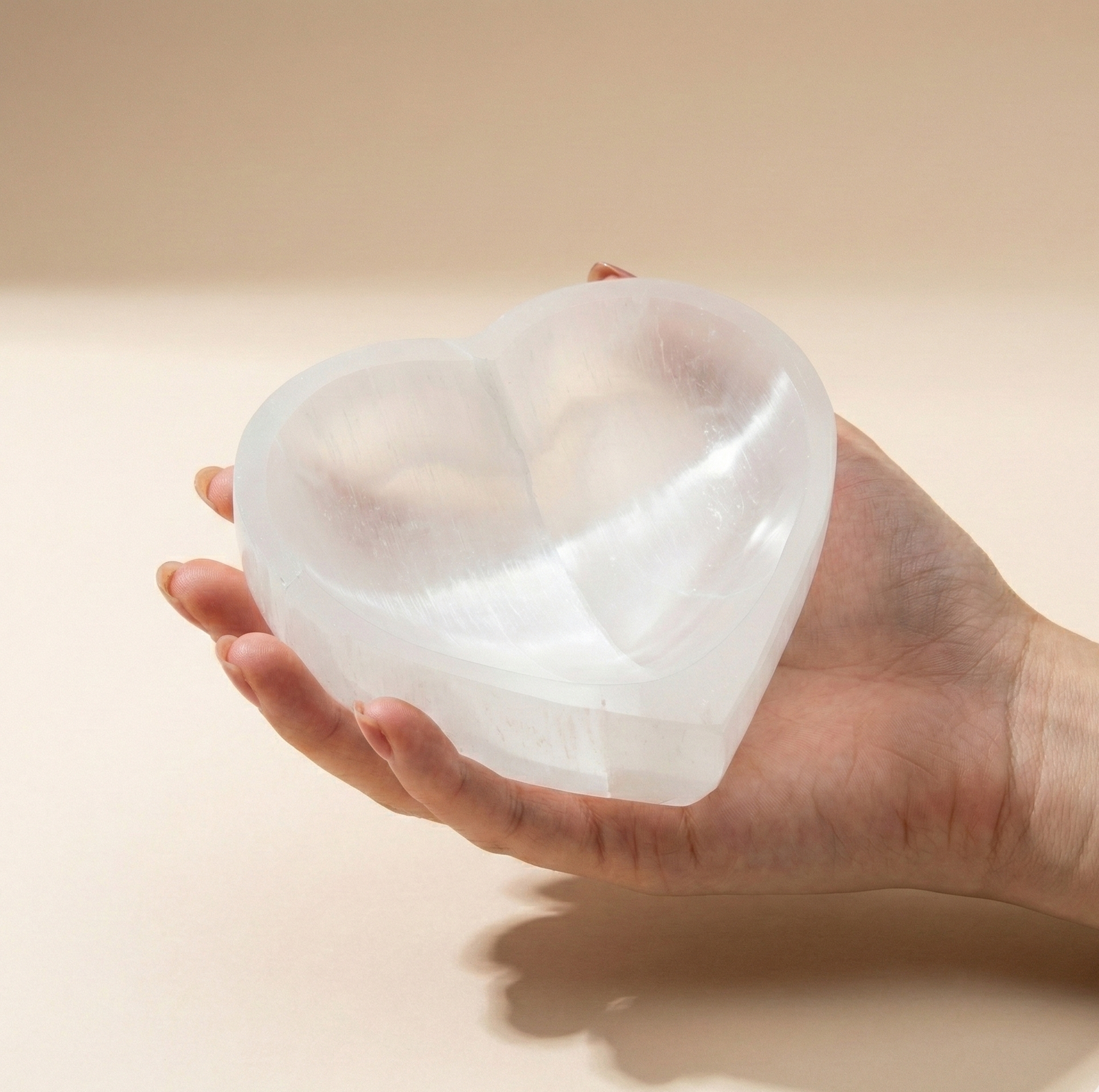 El Cuenco de Corazón de Selenita para Limpiar Cristales ofrece una versatilidad única para quienes practican la meditación o el autocuidado energético: