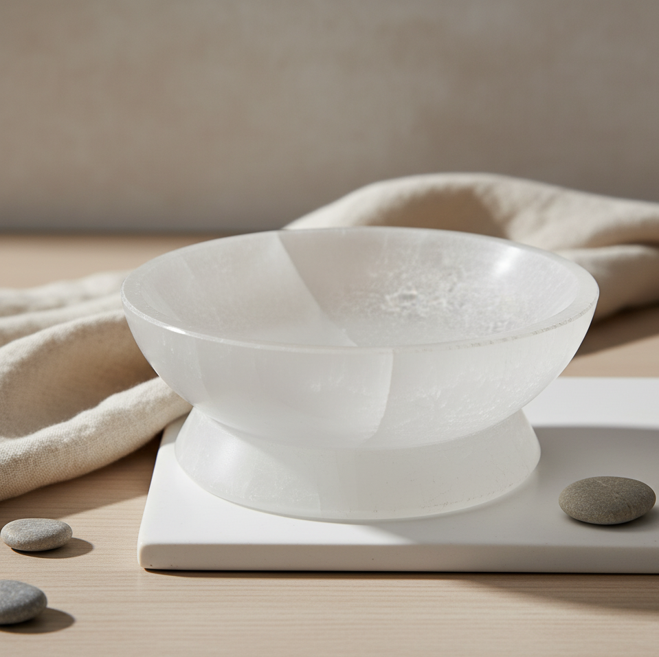 ✨ Cuenco Ritual de Selenita para Purificar Cristales: Tu Estación de Carga Sagrada