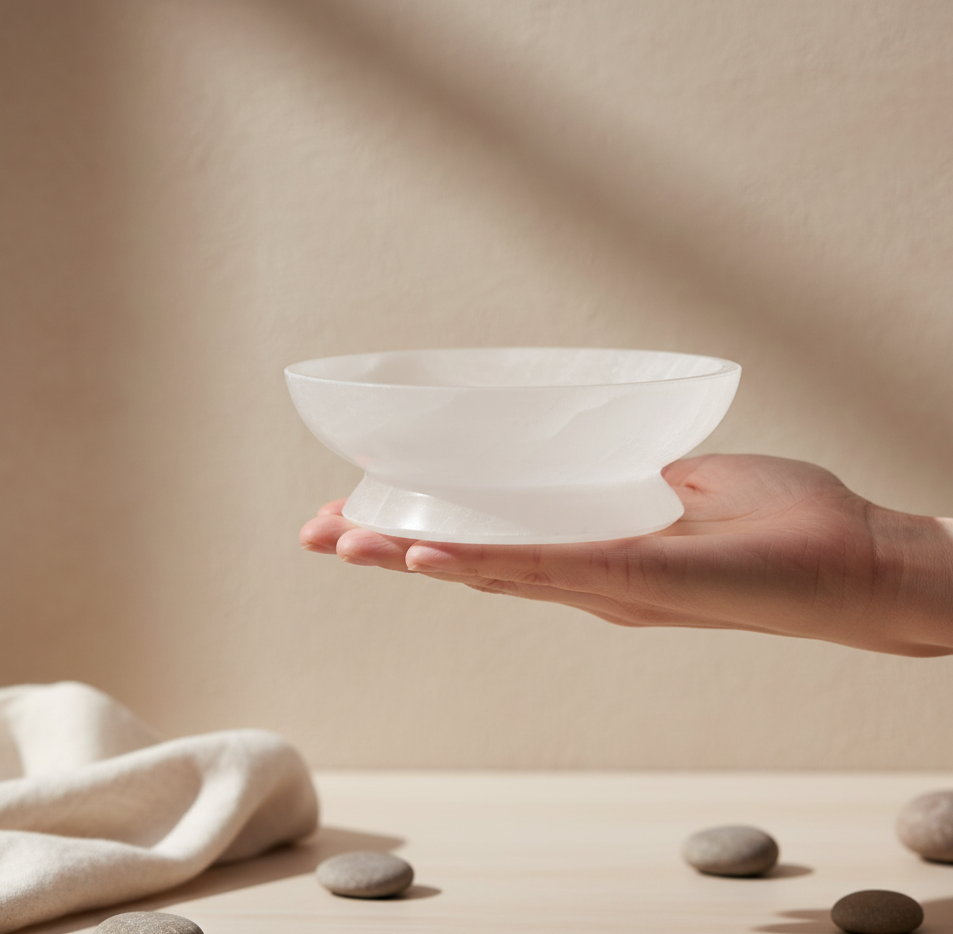 El Cuenco Ritual de Selenita para Purificar Cristales ofrece versatilidad y propósito en cada uso diario: