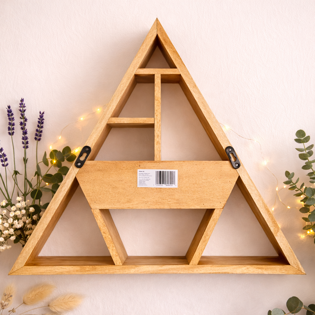 Dale a tu espacio un toque místico y audaz con esta pieza de diseño exclusivo. Nuestro Estante Triangular de Madera de Mango no es solo un mueble, sino una declaración de intenciones para tu hogar. Su forma geométrica limpia y equilibrada se fusiona con el detalle celestial de un cajón central, creando un equilibrio perfecto entre lo decorativo y lo práctico.