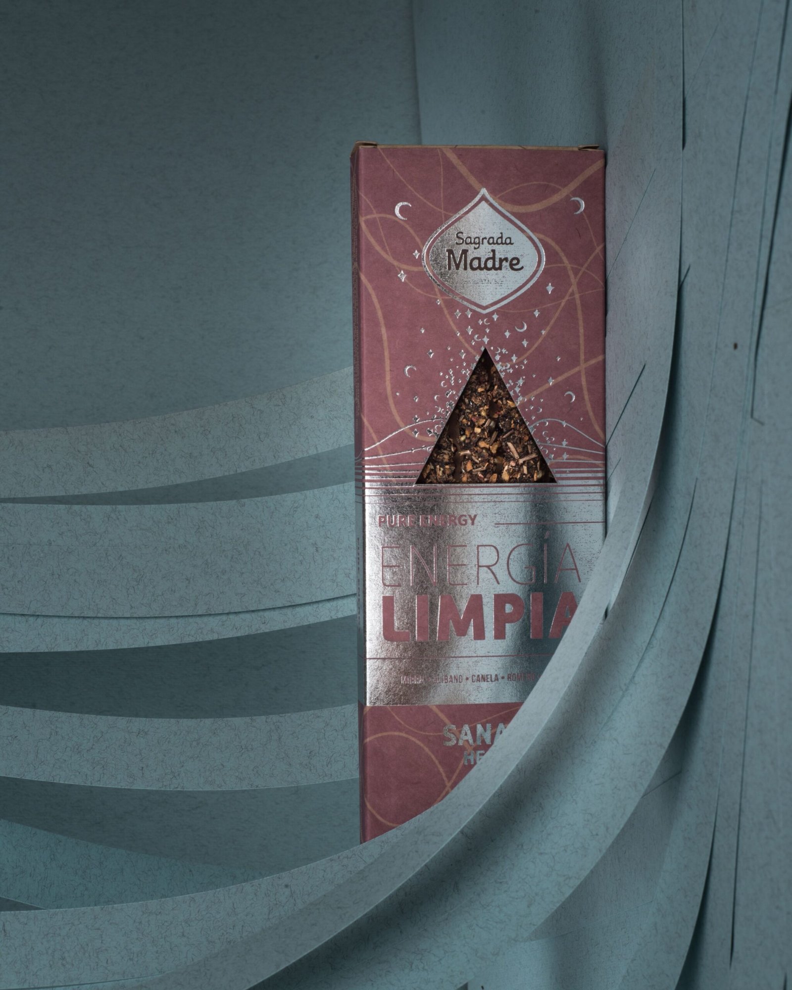 Sección Energía Limpia: Esta parte suele incluir plantas sagradas como el romero, la ruda, la salvia o resinas purificadoras que ayudan a despejar energías estancadas y negativas, refrescar el ambiente y aportar claridad. La limpieza es el primer paso para cualquier ritual de bienestar.