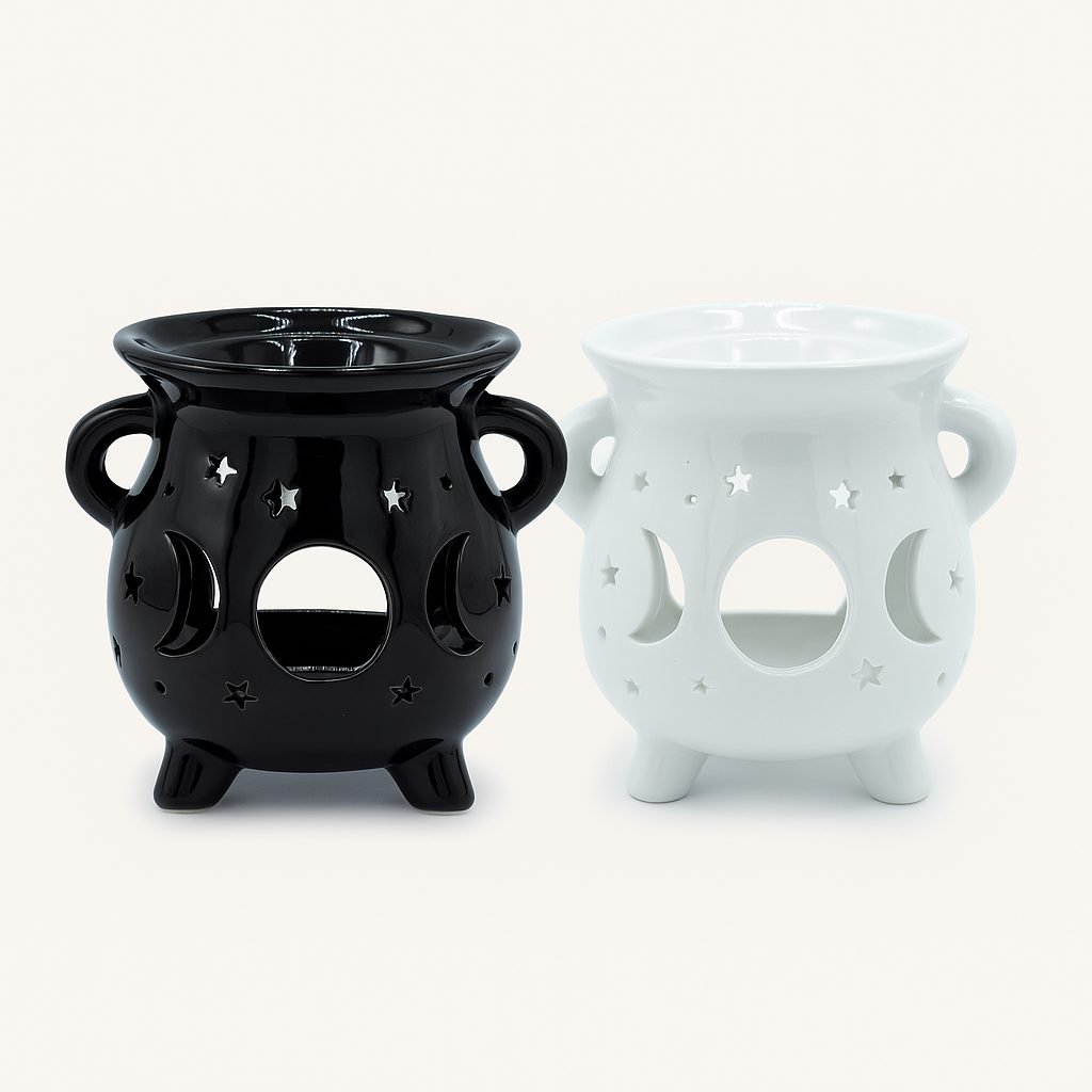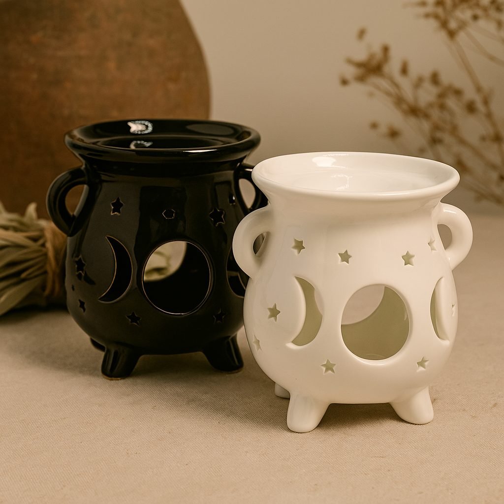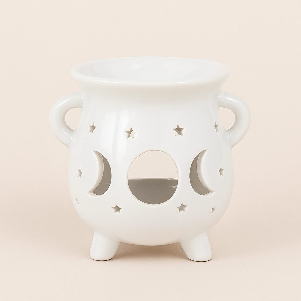 Simplemente enciende una vela de té en la base, y deja que este quemador de cerámica mística fase lunar transforme la energía. Lleva hoy esta pieza única a tu espacio y siente la magia en el aire de Aromarte.es.