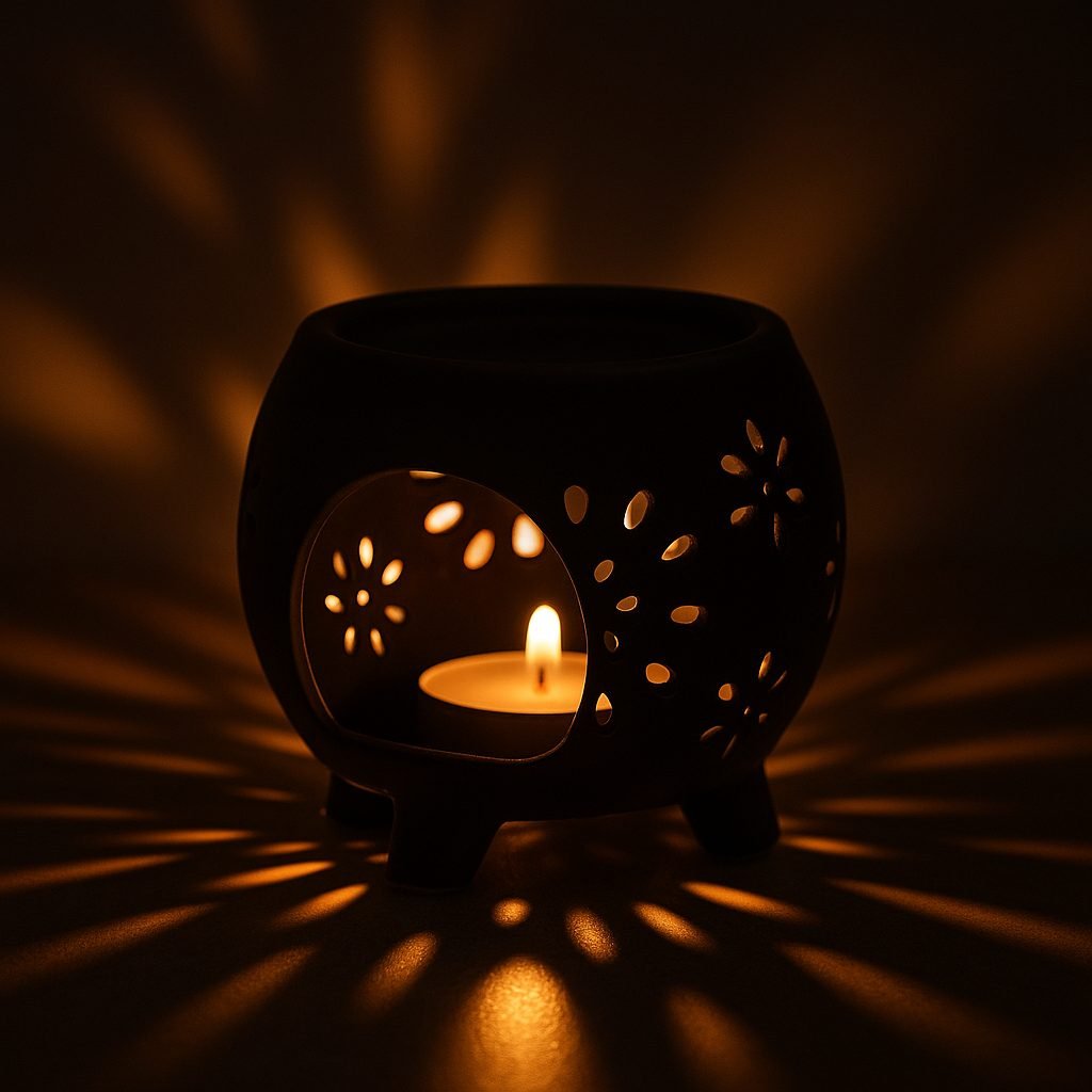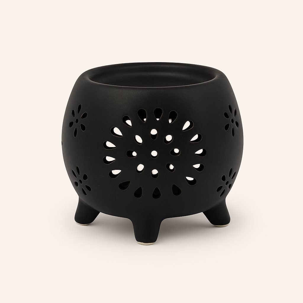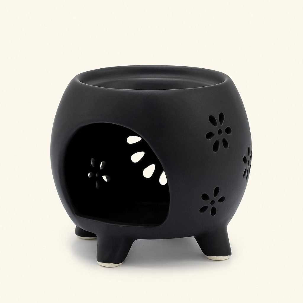🌙 Quemador Esencial «Sombra Floral» – Negro Mate: Crea tu Santuario Místico