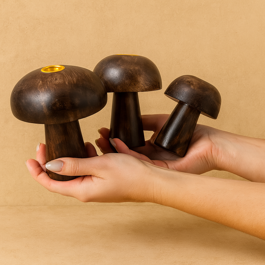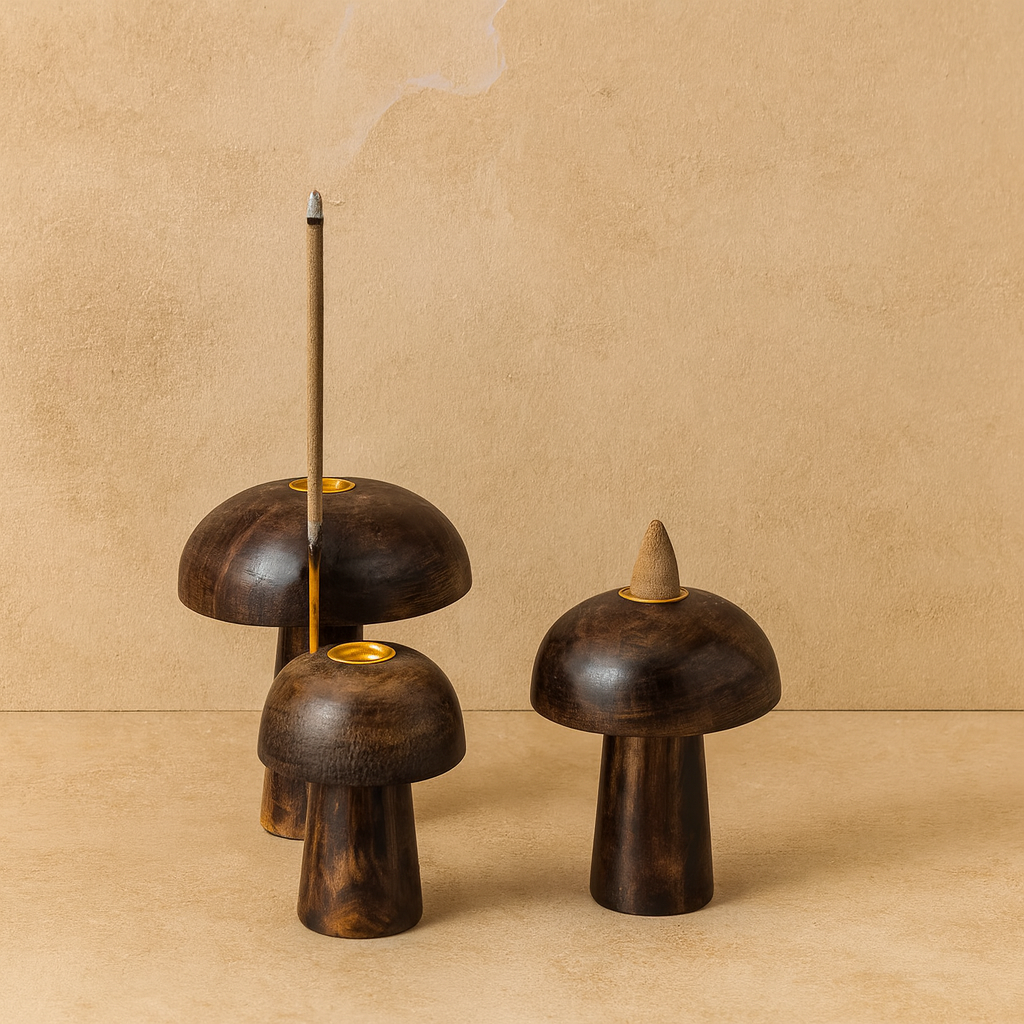 Descubre la magia del incienso con este precioso Set de 3 Setas Cono Incienso elaborado en madera de mango.