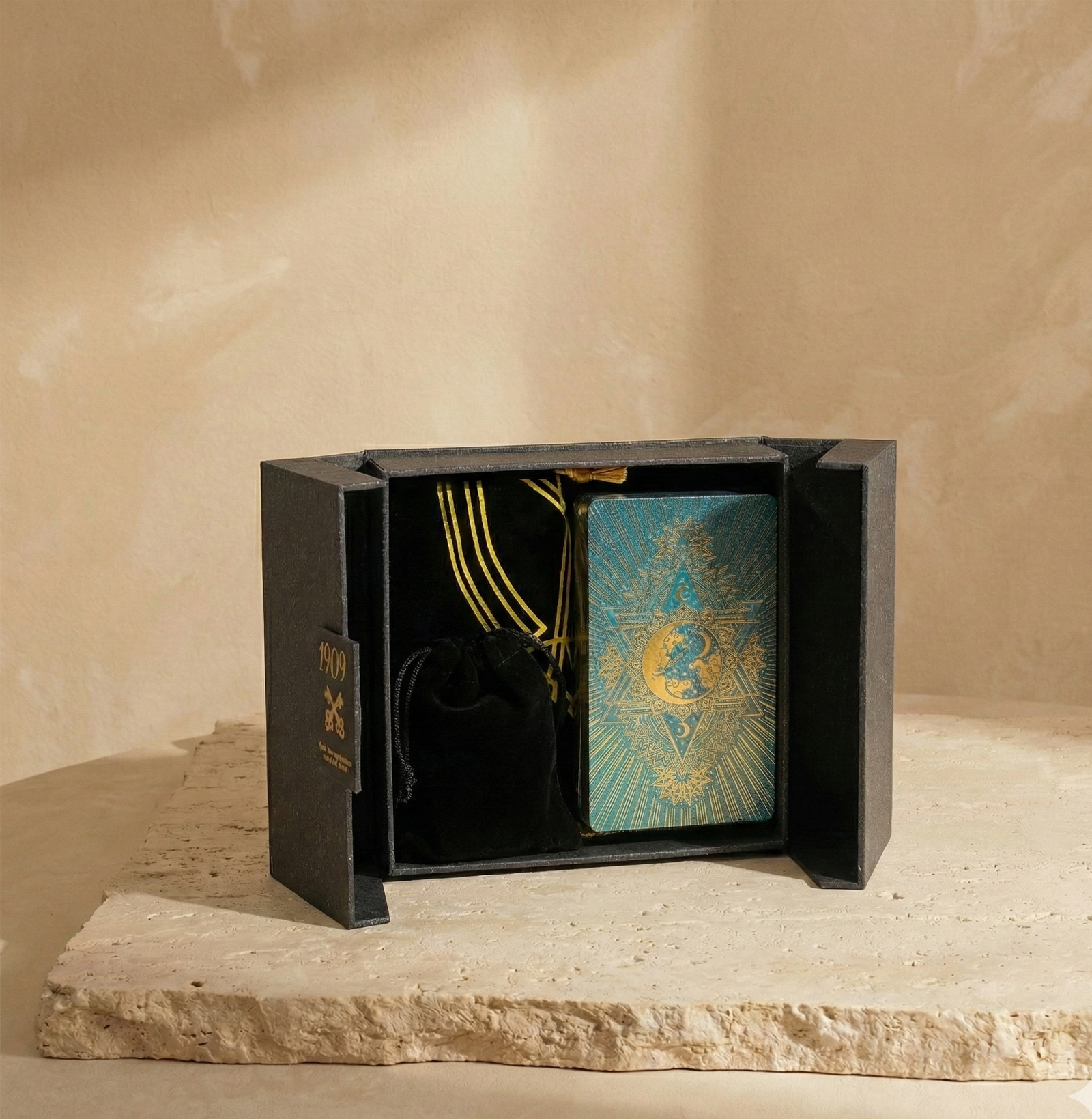 En AromArte Natura, cuidamos la presentación de cada detalle. Por esta razón, el Tarot Foil Oro y Turquesa viene protegido en una caja de presentación de lujo. Esta caja texturizada cuenta con detalles en lámina que ofrecen un acabado de alto nivel, ideal para sorprender a esa persona especial. Para potenciar tu ritual de lectura, te recomendamos encender nuestra Vela Hechizo Mágico Felicidad, ya que su aroma armoniza perfectamente con la energía renovadora del color turquesa.