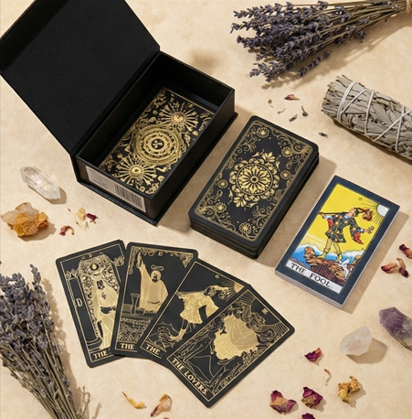 Este set de Tarot Dorado con Libro y Caja de Regalo está diseñado para ser accesible y lujoso a la vez: